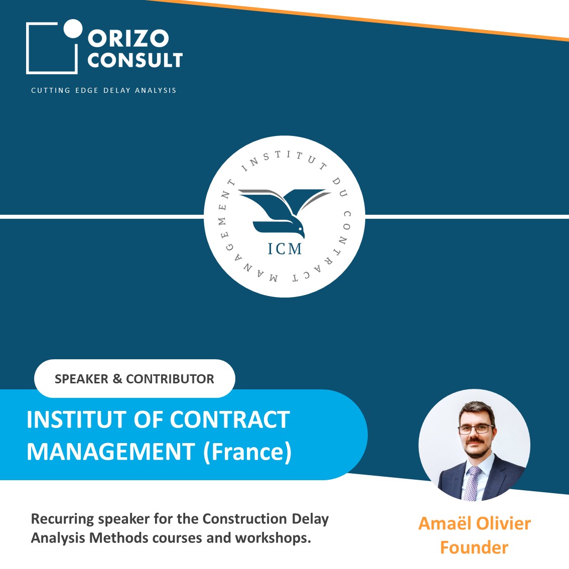 Nous sommes ravis d’annoncer que notre fondateur et Expert en retards, Amaël Olivier, a récemment rejoint l’équipe de l’Institut du Contract Management (ICM) en France en tant qu’intervenant récurrent pour les cours et ateliers sur les méthodes d’analyse des retards de construction.