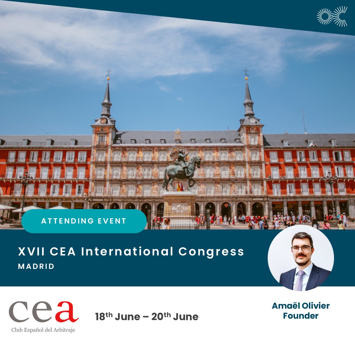 Notre fondateur Amaël Olivier sera présent au XVIIe Congrès du Club Español del Arbitraje (CEA), l’un des plus importants événements d’arbitrage international en Espagne, en Europe et dans les pays hispanophones, qui réunira les meilleurs professionnels du secteur.